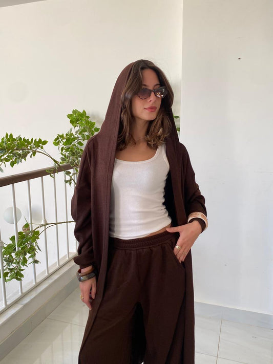 Meet your new winter essentialSoft, warm, and effortlessly chic, this matching zip-up and wide-leg combo...