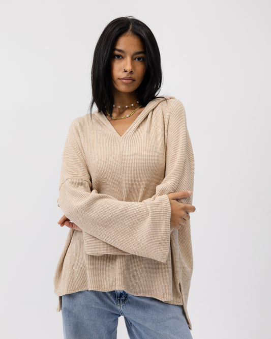 Product Description This waffle-knit hooded top is made for effortless, cozy style. It features a...