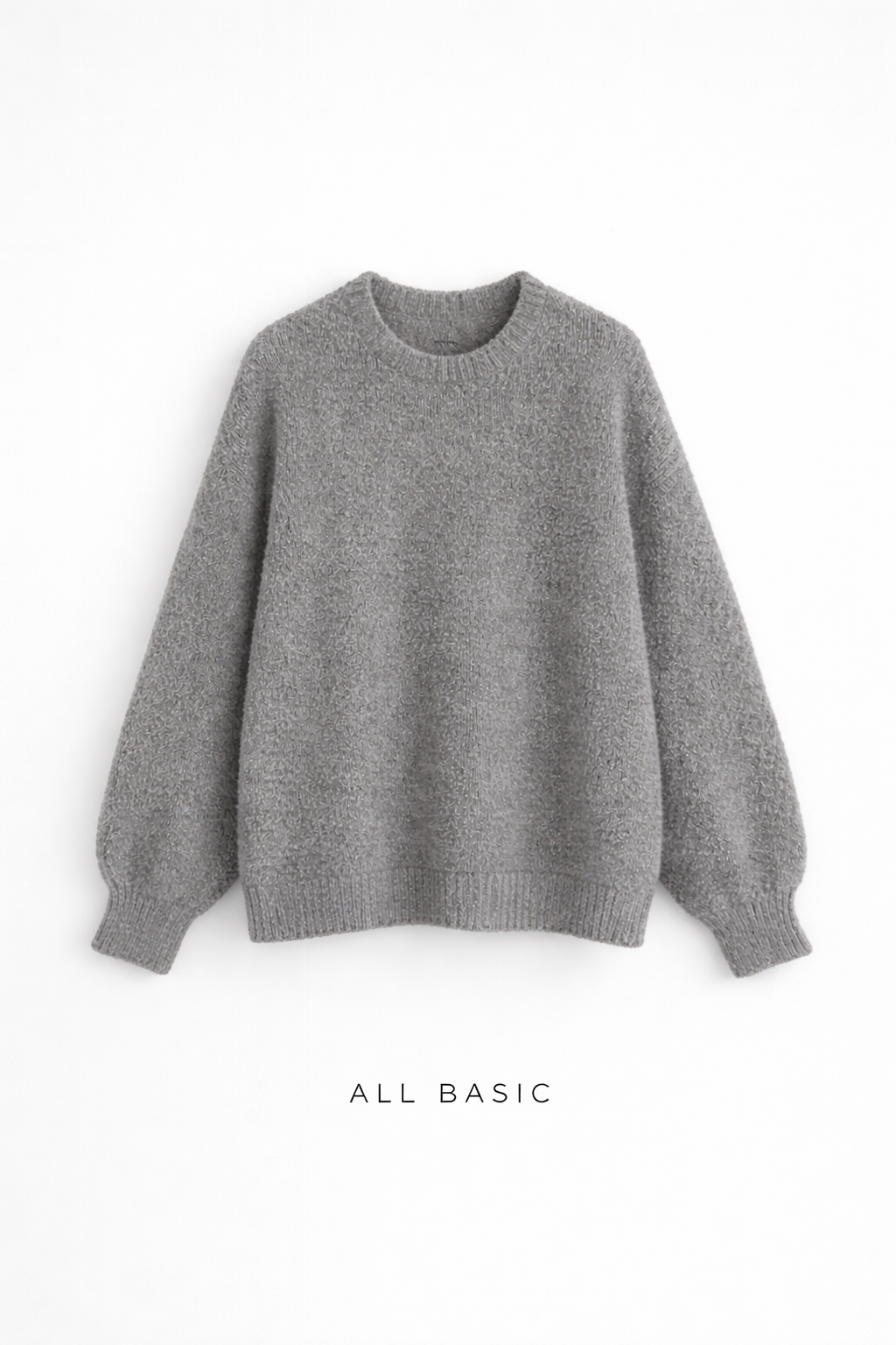 A cozy everyday essential designed with a soft, fuzzy knit texture and a relaxed fit. This pullover is perfect for layering or wearing on its own, giving you effortless comfort with a polished, minimal look. Easy to style for casual days, work-from-home moments, or cozy outings.