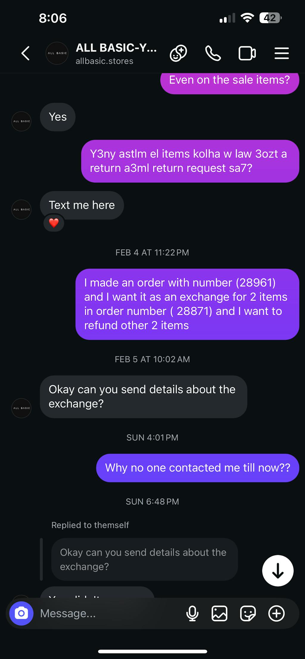 في طلبات الاستبدال: نتحمل رسوم الشحن الثانية. رسوم الاستبدال فقط!