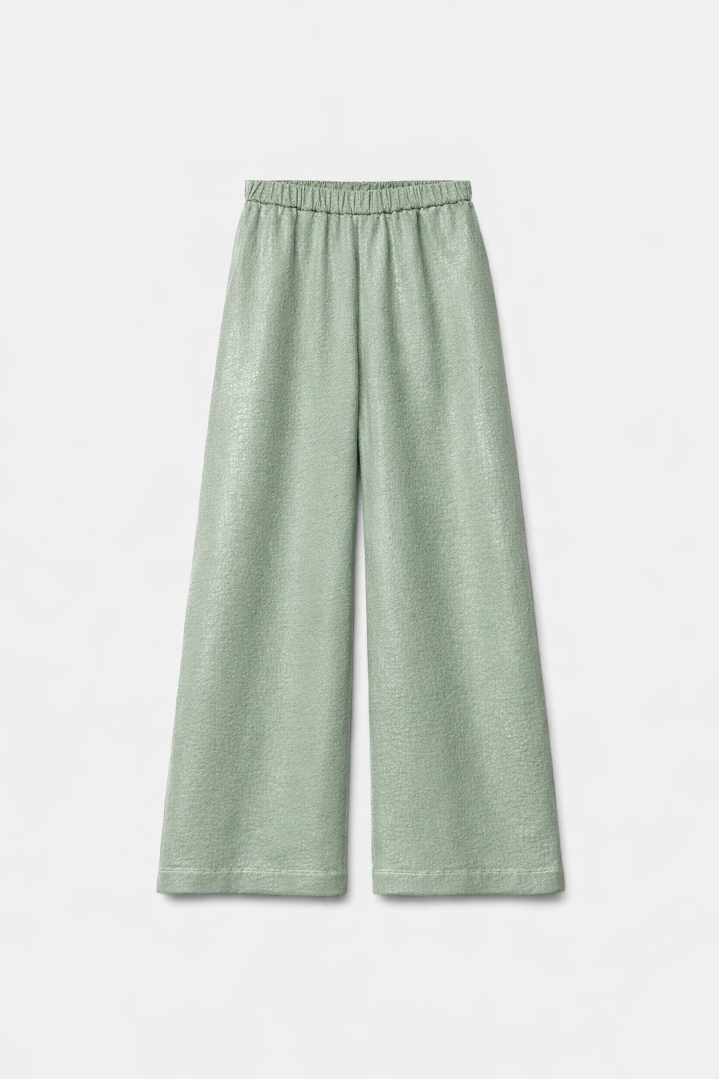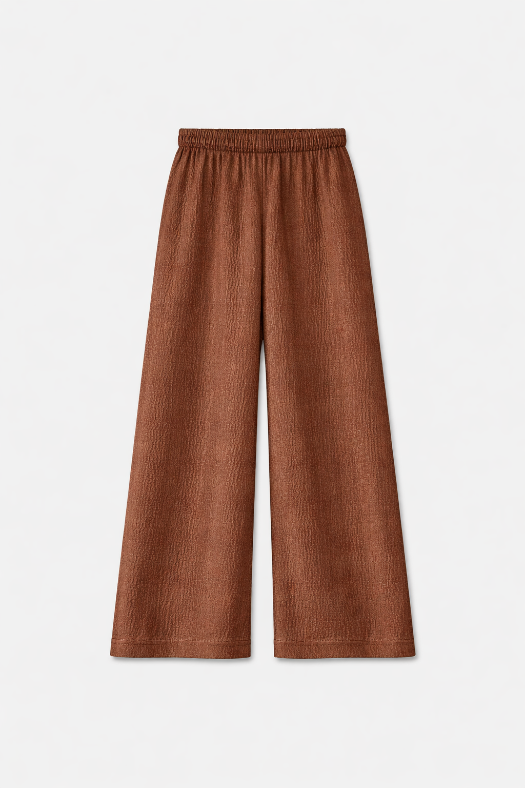 Effortlessly chic with a touch of texture, these wide-leg pants are designed to elevate your everyday look. Crafted in a soft, lightweight fabric with a subtle sheen, they offer a perfect balance between comfort and style.