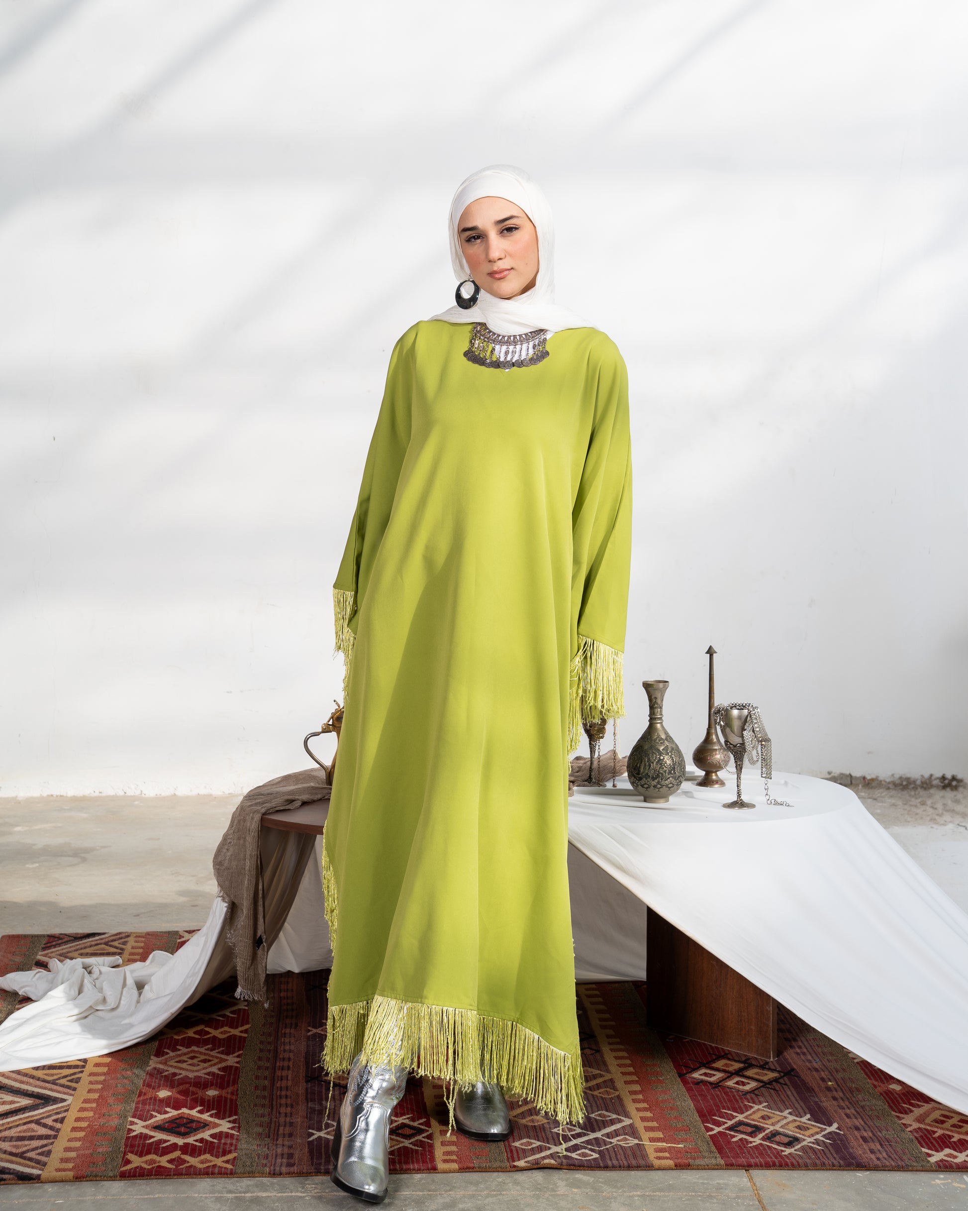 A flowing statement piece designed for effortless elegance. This loose-fit kaftan features a graceful silhouette with soft draping that flatters all body types. Crafted from lightweight fabric, it offers comfort without compromising on style.