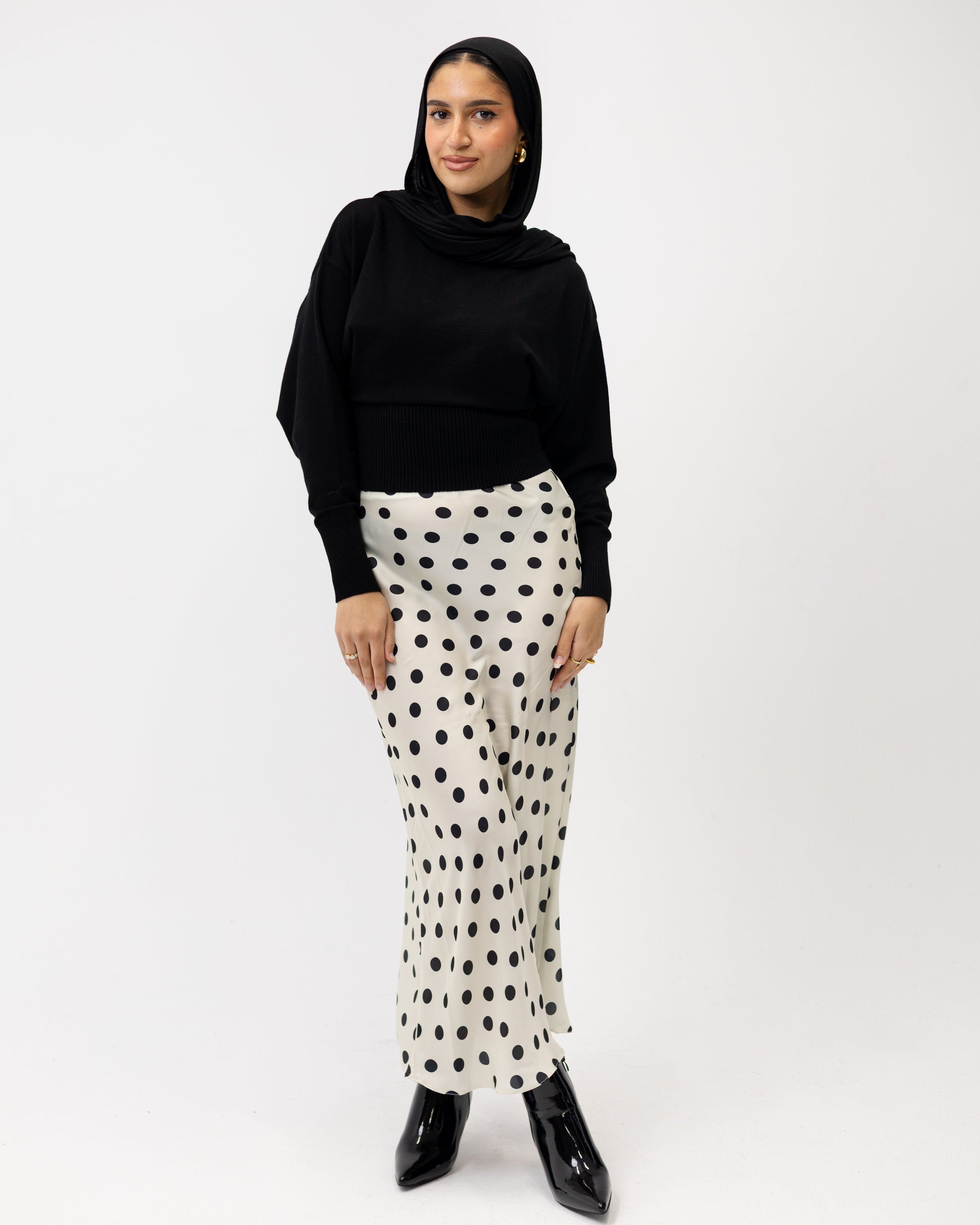 Elevate your wardrobe with our Polka Dots Satin Skirt, featuring a smooth, flowy satin finish that moves beautifully with every step. Designed with a classic black-and-white polka dot print, this skirt brings a playful yet elegant touch to any outfit. Lightweight, comfortable, and easy to style pair it with basics for daytime chic or dress it up for evening outings.