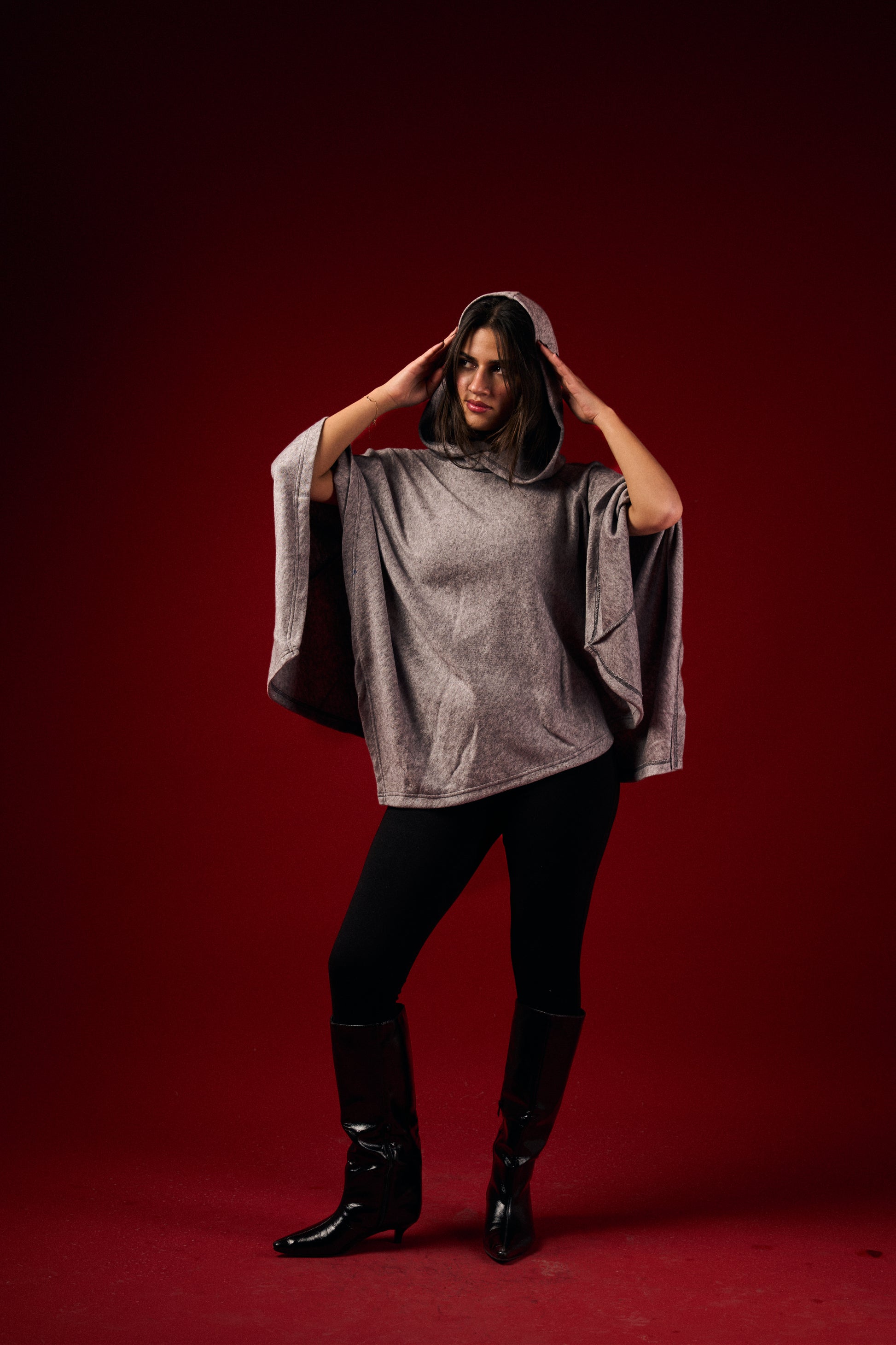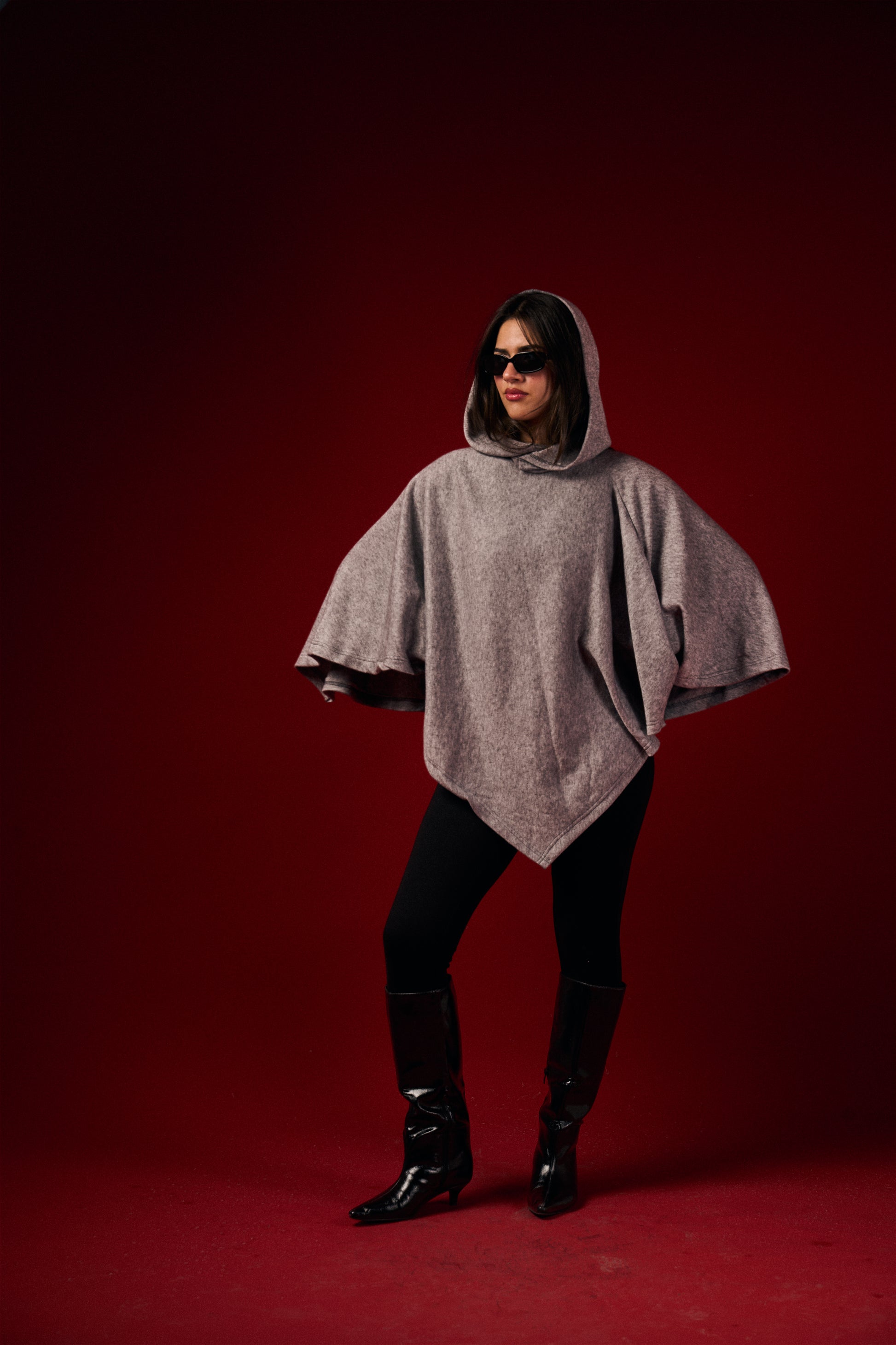 cape is the perfect blend of comfort, warmth, and statement style. Designed with a relaxed oversized fit and wide flowing sleeves, it offers effortless layering for colder days. The soft textured fabric drapes beautifully,