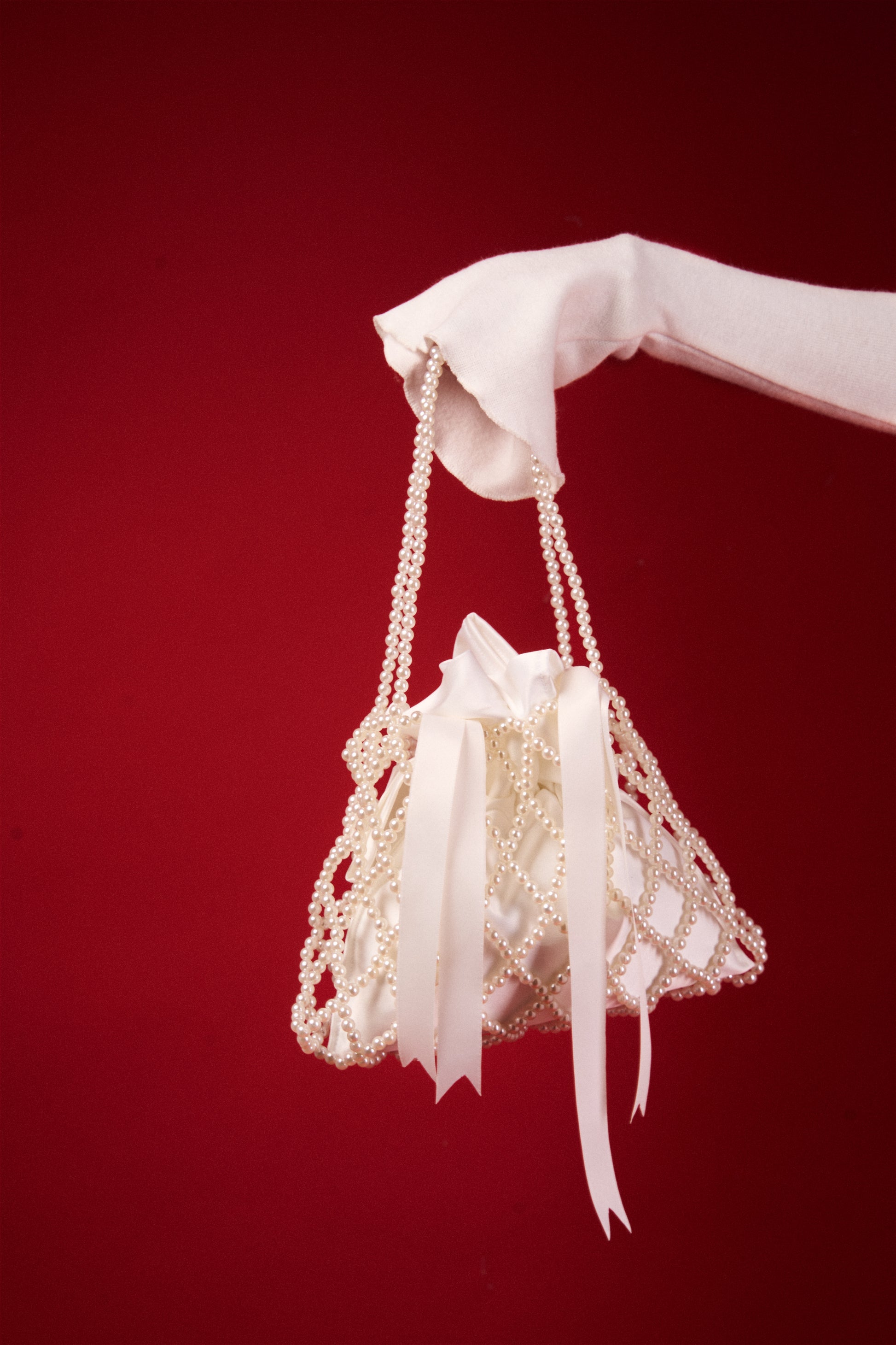 High-shine acrylic beads with a soft velvet-touch inner pouch and beaded handles.