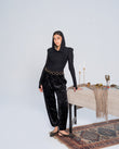 This velvet set is all about effortless elegance with a relaxed, modern feel. Crafted from soft, luxe velvet, it features a comfortable zip-up top paired with matching wide-leg pants for a perfectly coordinated look.